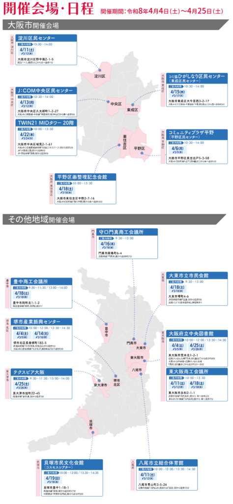 ✓各会場には定員がございますので、お早めのお申込をお願いいたします。