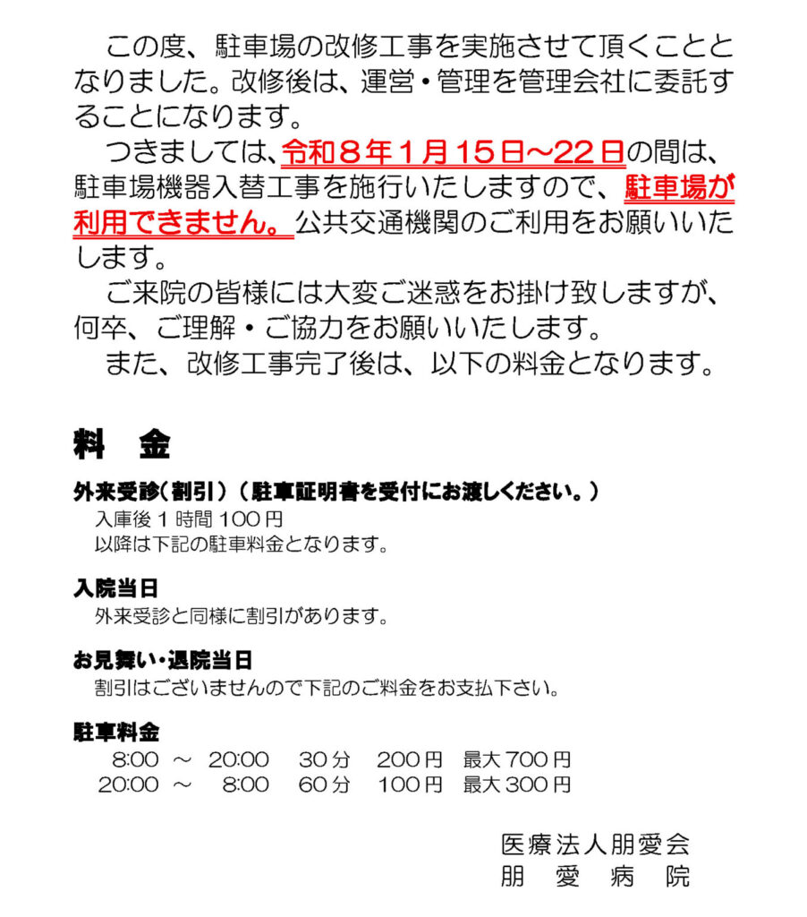 午前:月~土曜日 9:00~12:30午後:木曜日のみ 17:00~19:00