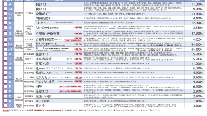 当施設では、各種健診コースに追加してお受けいただけるオプション検査も53種類取り揃えております。お客様の気になる部分に合わせて、目的別に適切なメニューをお選びいただけます。